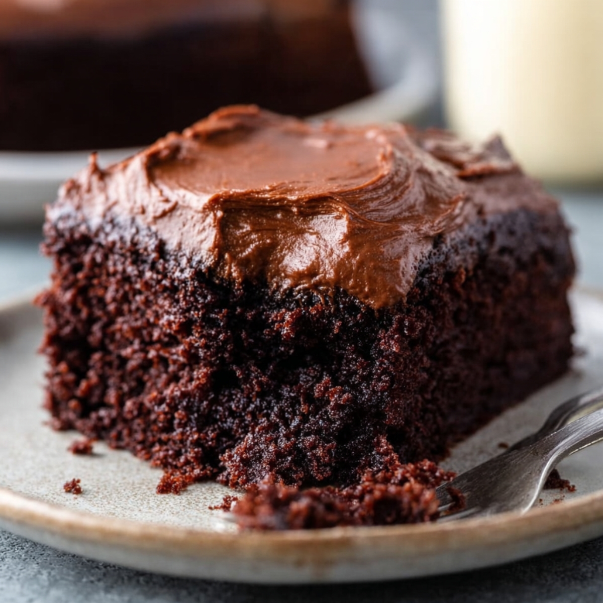The frosting is perfectly balanced. It's sweet but not overly so, with a deep chocolate flavor that complements the cake beautifully. You can spread it thick or thin, depending on how much frosting you like. And if you chill the frosted cake for a bit, the frosting sets up nicely and makes slicing super clean.